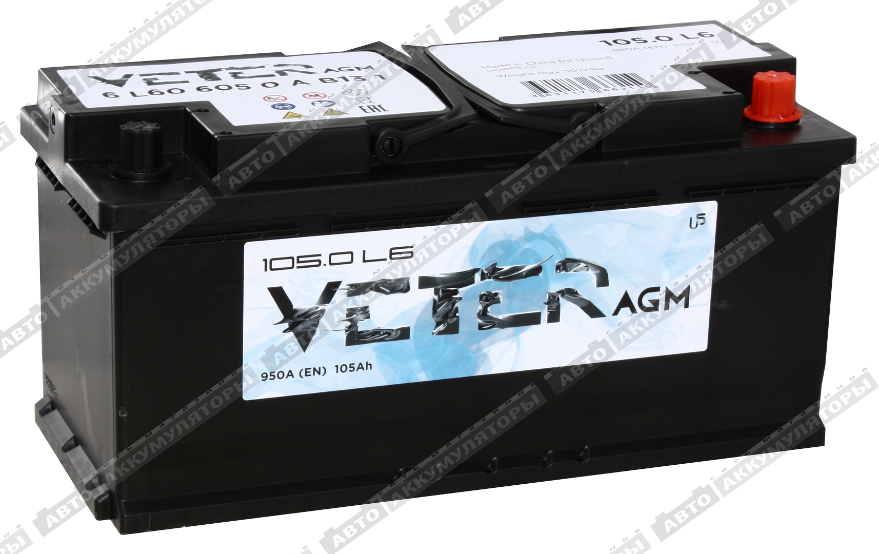 Легковой аккумулятор Veter NEW 105.0 AGM
