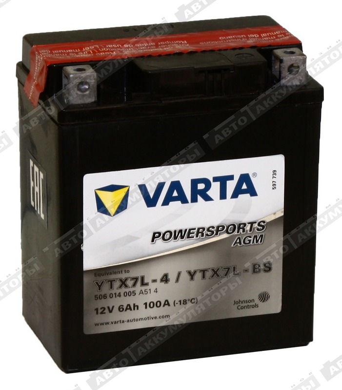 Мотоаккумулятор Varta AGM 506 014 005 (YTX7L-BS) (У)