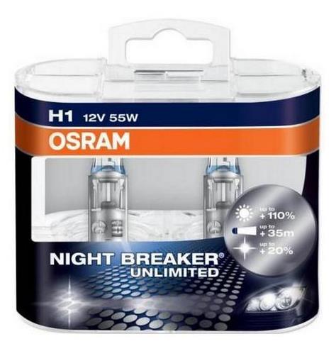 Автолампа Osram H1 12V-55W Night Breaker Unlimited Duo-Box (2шт)